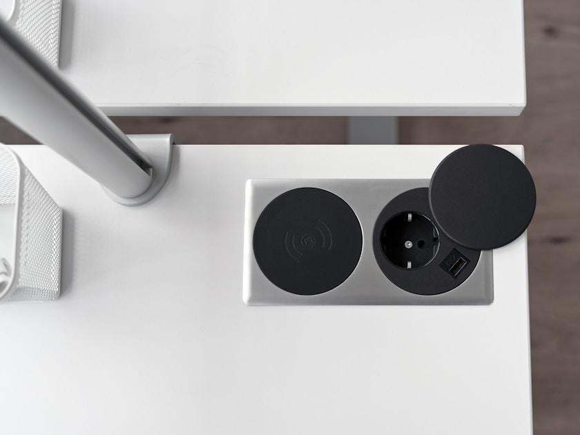 Some desks now come with built-in Qi pads. You can also buy under-desk chargers that work through wood up to 25mm thick. Your phone charges by just sitting on a specific spot on your desk surface — zero visible hardware.